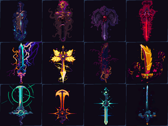 A collection of pixel art swords with unique themes (12 swords) 🗡️